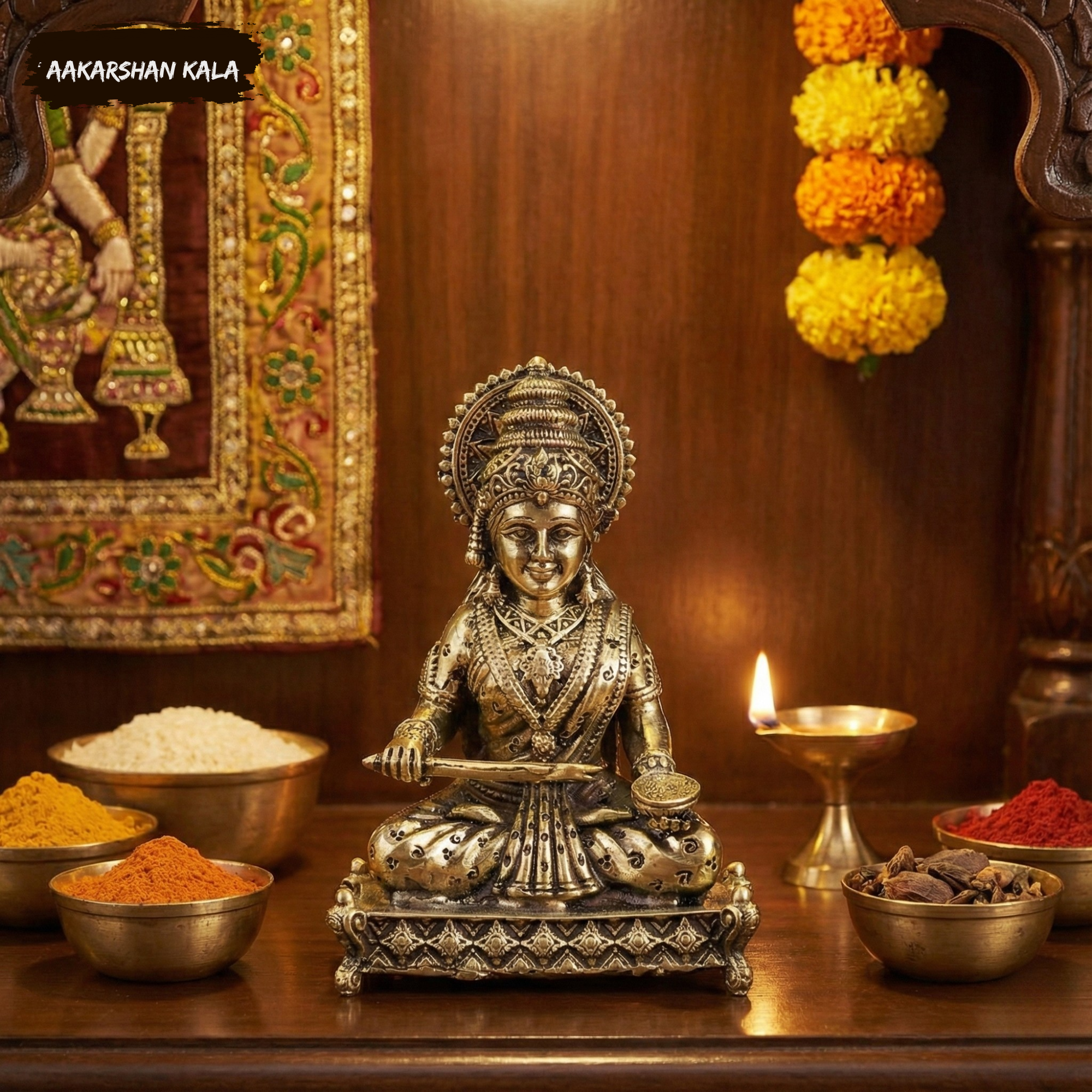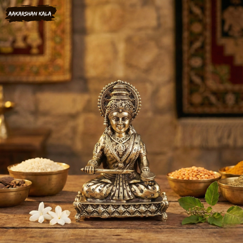✨ Intricately Carved Brass Annapurna Devi Idol – Superfine & Lightweight ✨
