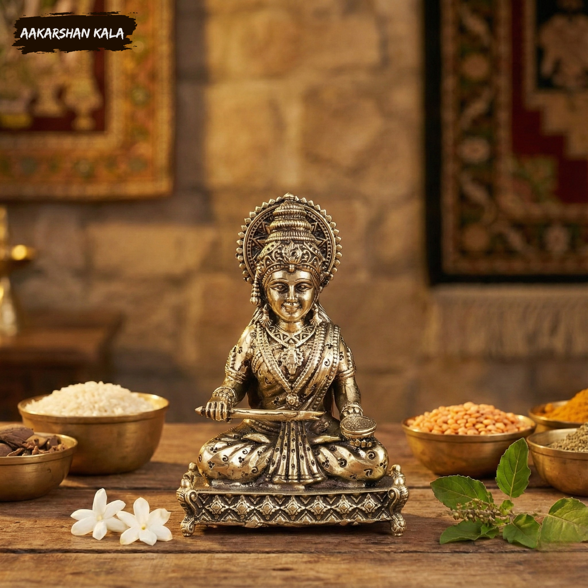 Expertly handcrafted by skilled artisans, this miniature yet finely carved idol beautifully captures the serene and powerful essence of Goddess Annapurna.