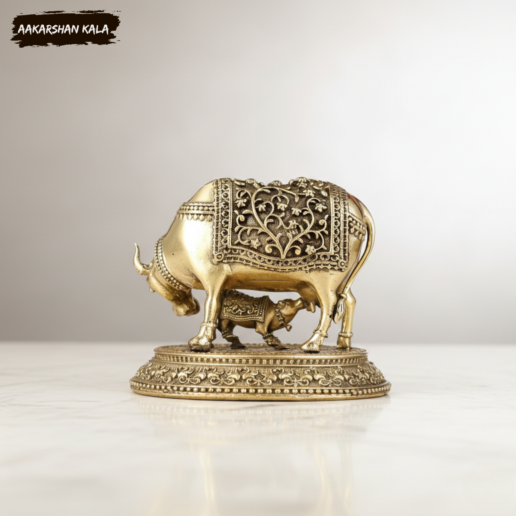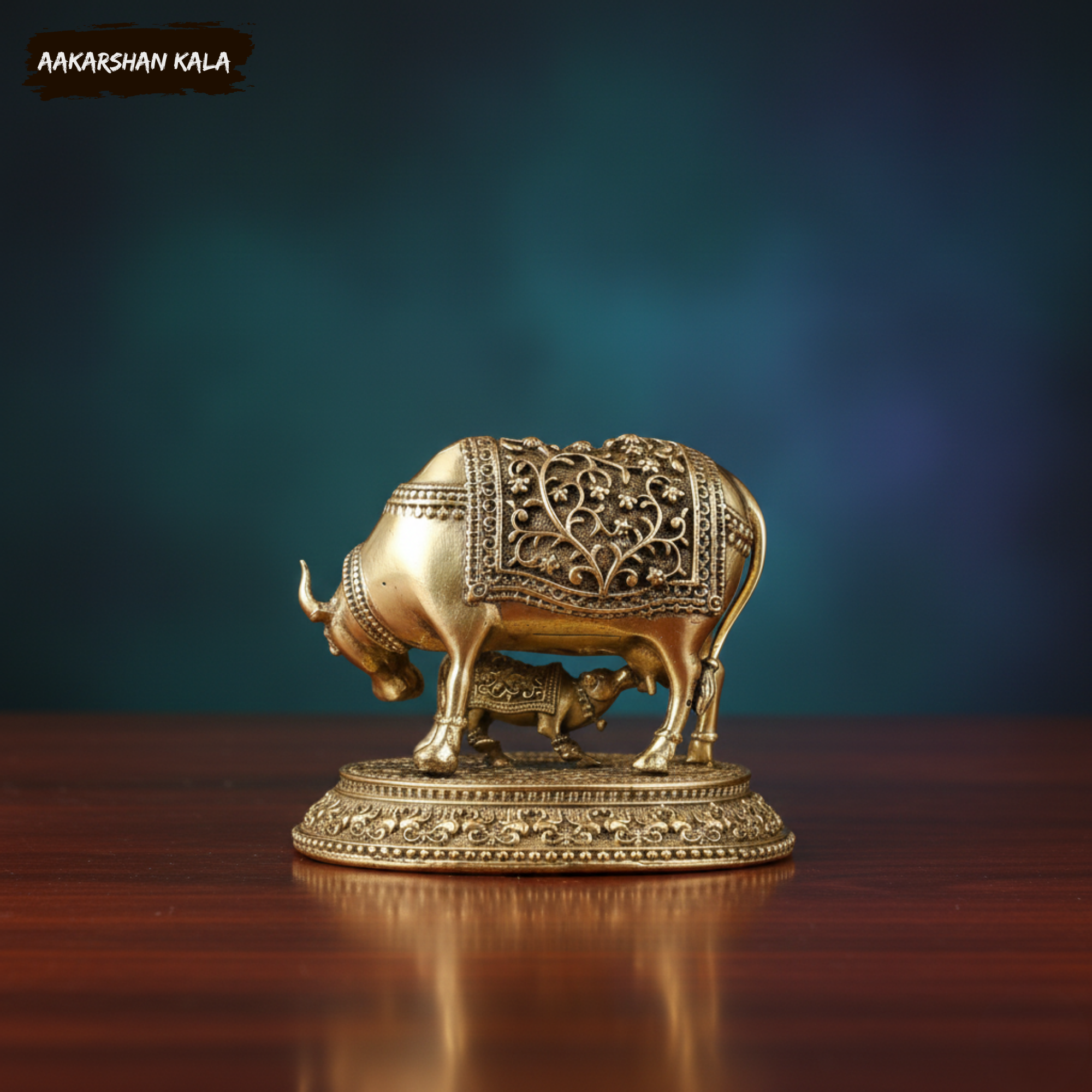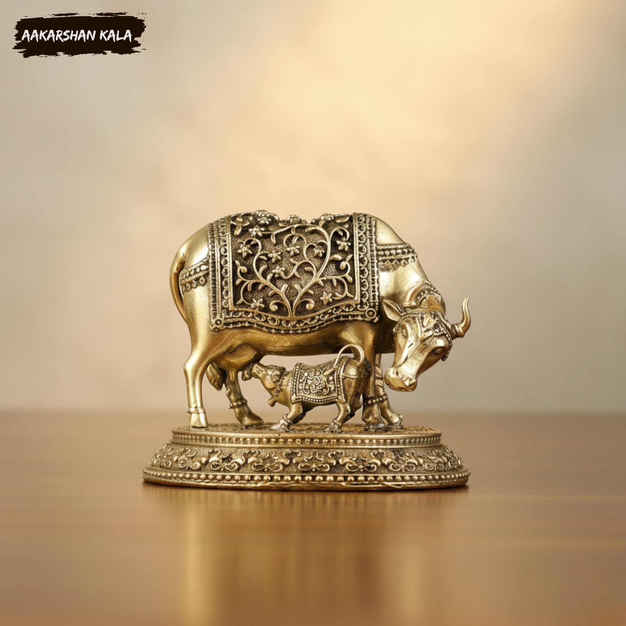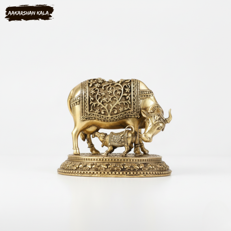 Experience divine motherhood and abundance in an exquisitely crafted form with our Brass Superfine Miniature Kamdhenu Cow with Calf. Known as the sacred “wish-fulfilling cow,” Kamdhenu represents nurturing energy, purity, and prosperity — making it a cherished addition to any spiritual or décor setting.
