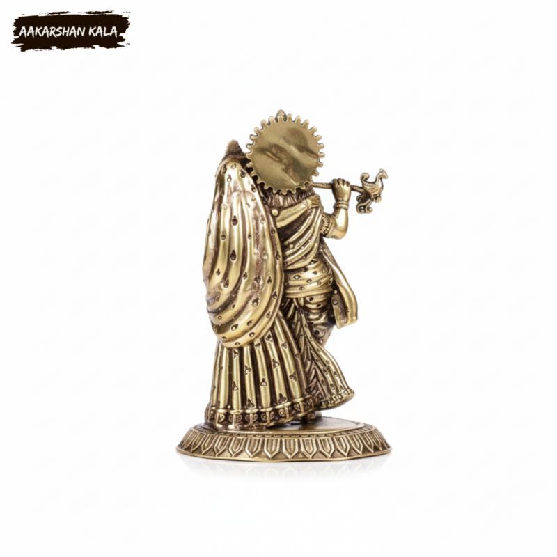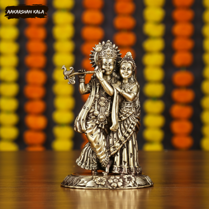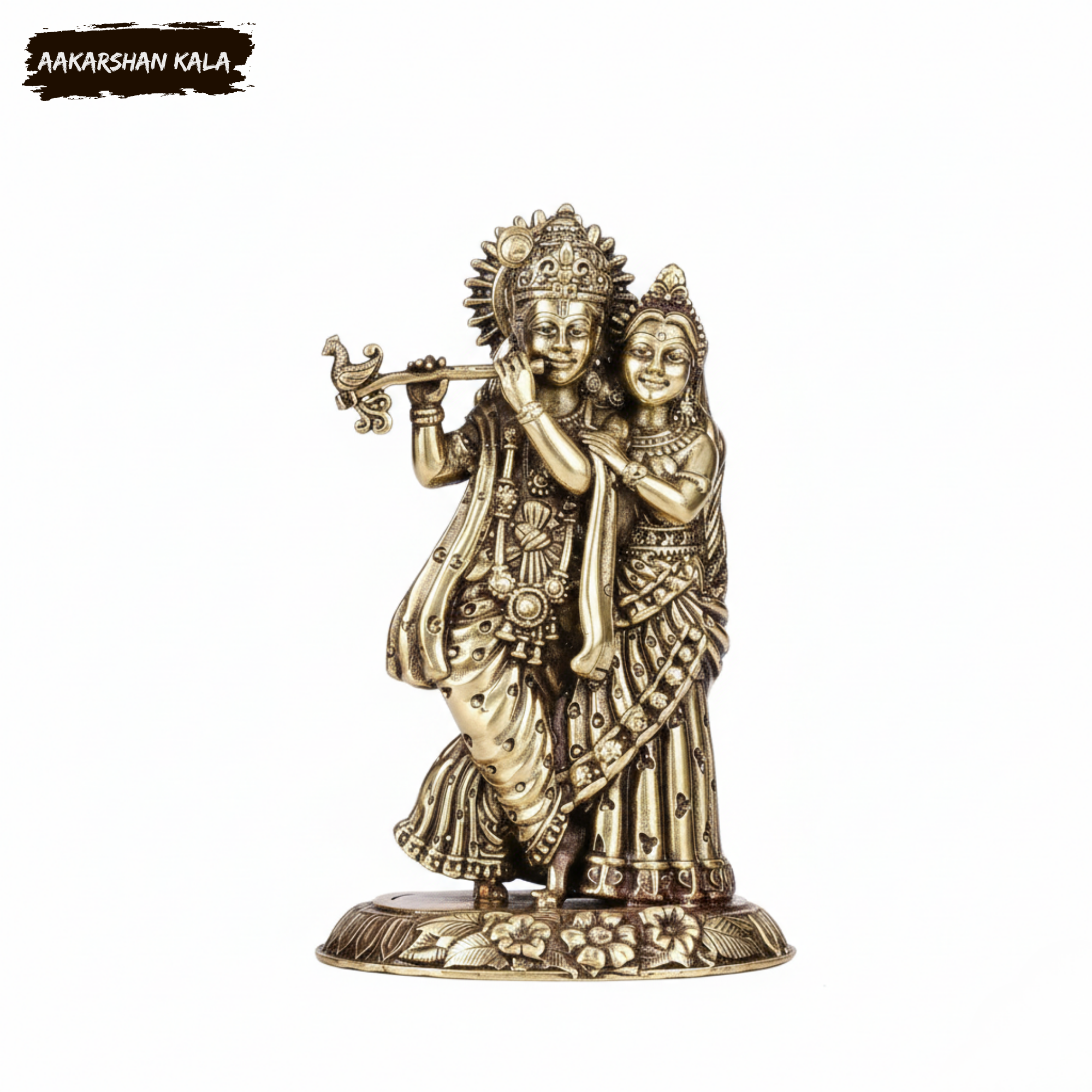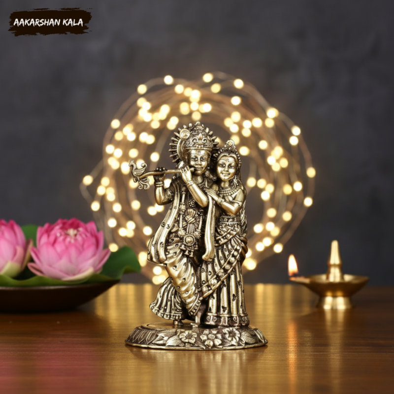 Brass Radha Krishna Statue | Intricate Hindu God Murti, Home Temple Decor