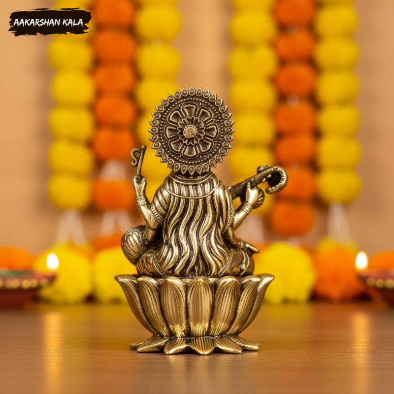 Schools, libraries, books, pens, musical instruments, and artistic tools serve as her sacred offerings — honoring the goddess who illuminates every path of knowledge.
