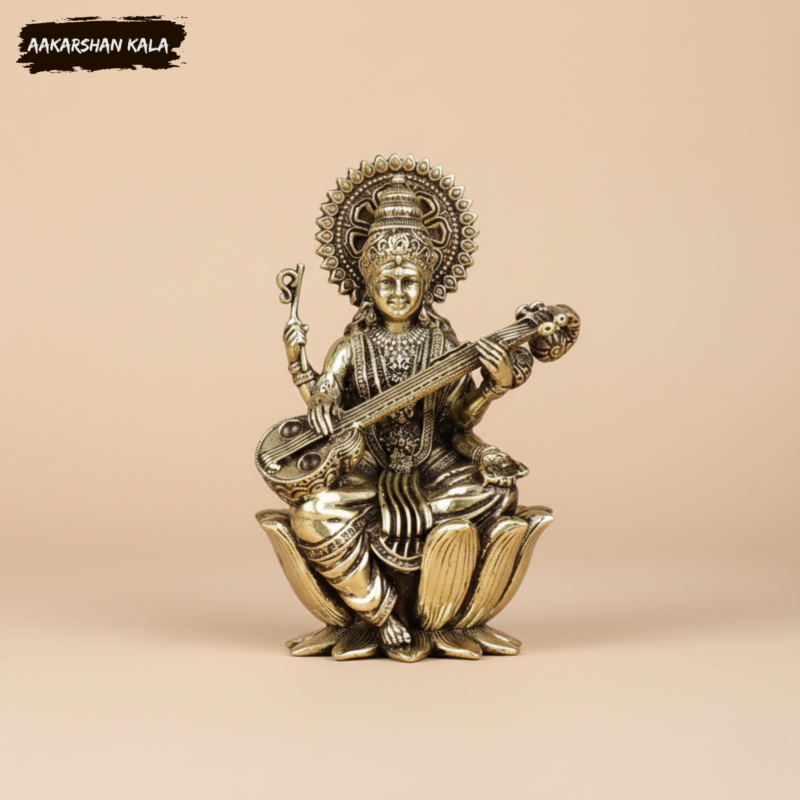 Draped in a simple white sari, Maa Saraswati symbolizes purity, clarity, and detachment from material desires. She transcends worldly cravings and celebrates the power of the mind as the divine patron of learning, creativity, and true wisdom. She represents all that is pure and sublime in nature.