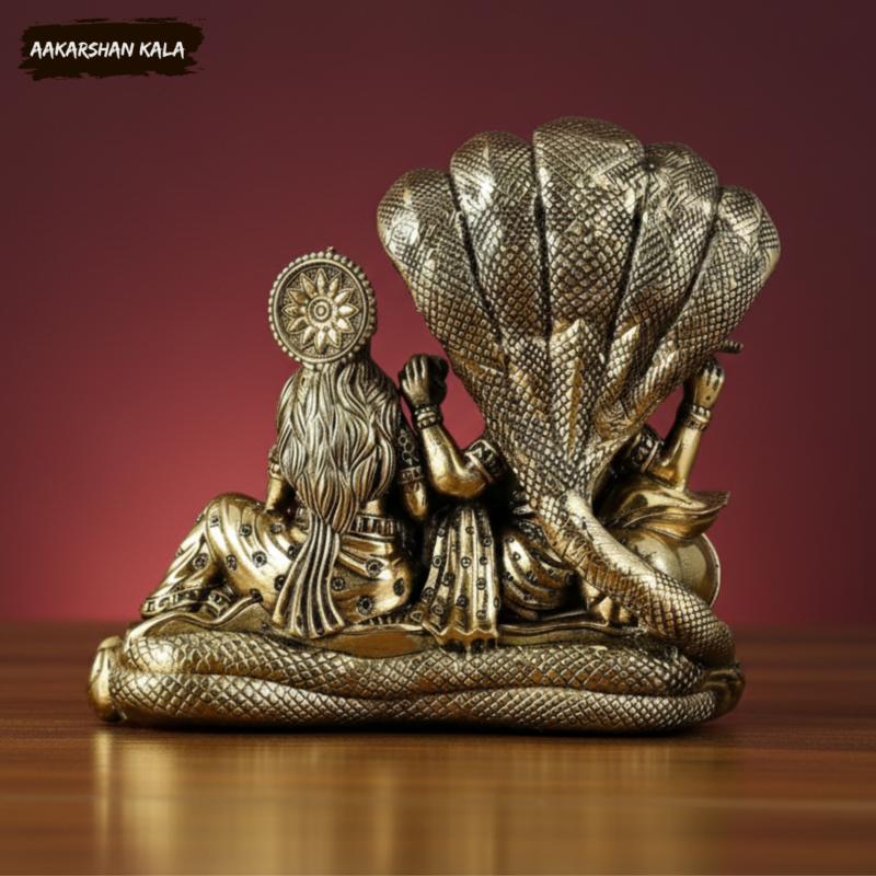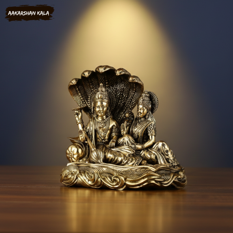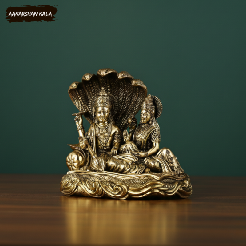 Bring home divine serenity and cosmic harmony with this exquisitely crafted Brass Vishnu Anantashayana Idol, portraying Lord Vishnu resting gracefully on the mighty Sheshanaag, with Goddess Lakshmi seated reverently at His feet. This sacred depiction symbolizes eternal protection, balance of the universe, and the flow of divine prosperity.