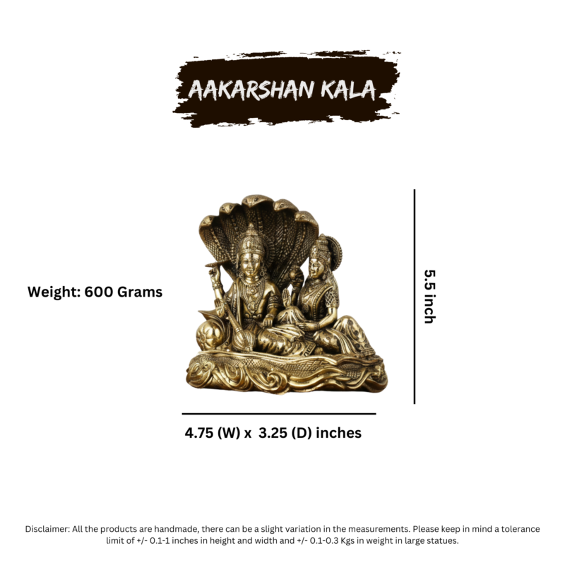 Brass Vishnu Anantashayana Idol with Lakshmi | Vishnu Resting on Sheshnaag Statue | 5 Inch