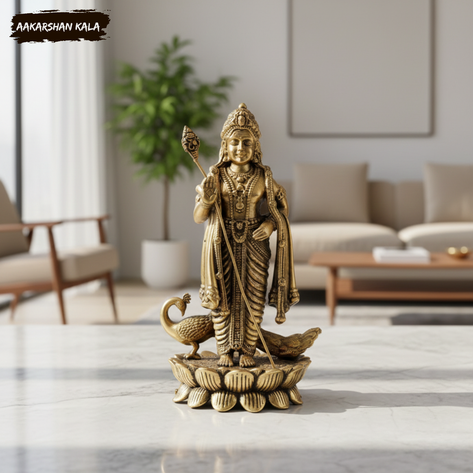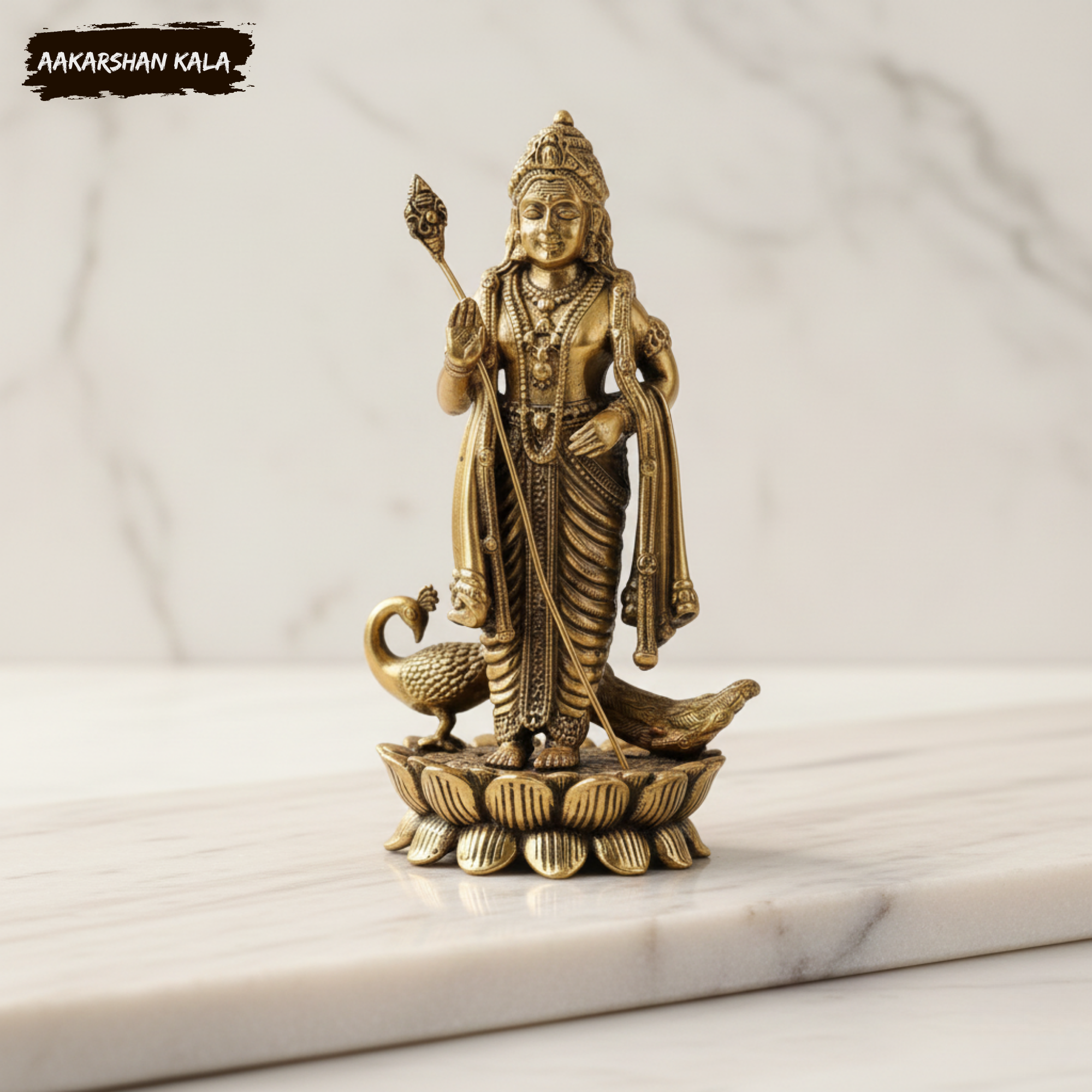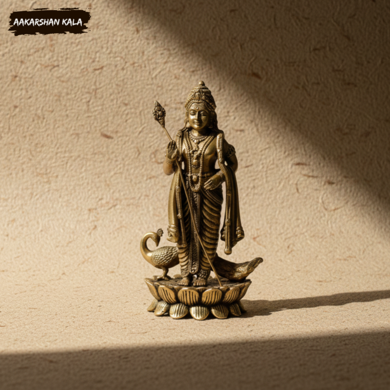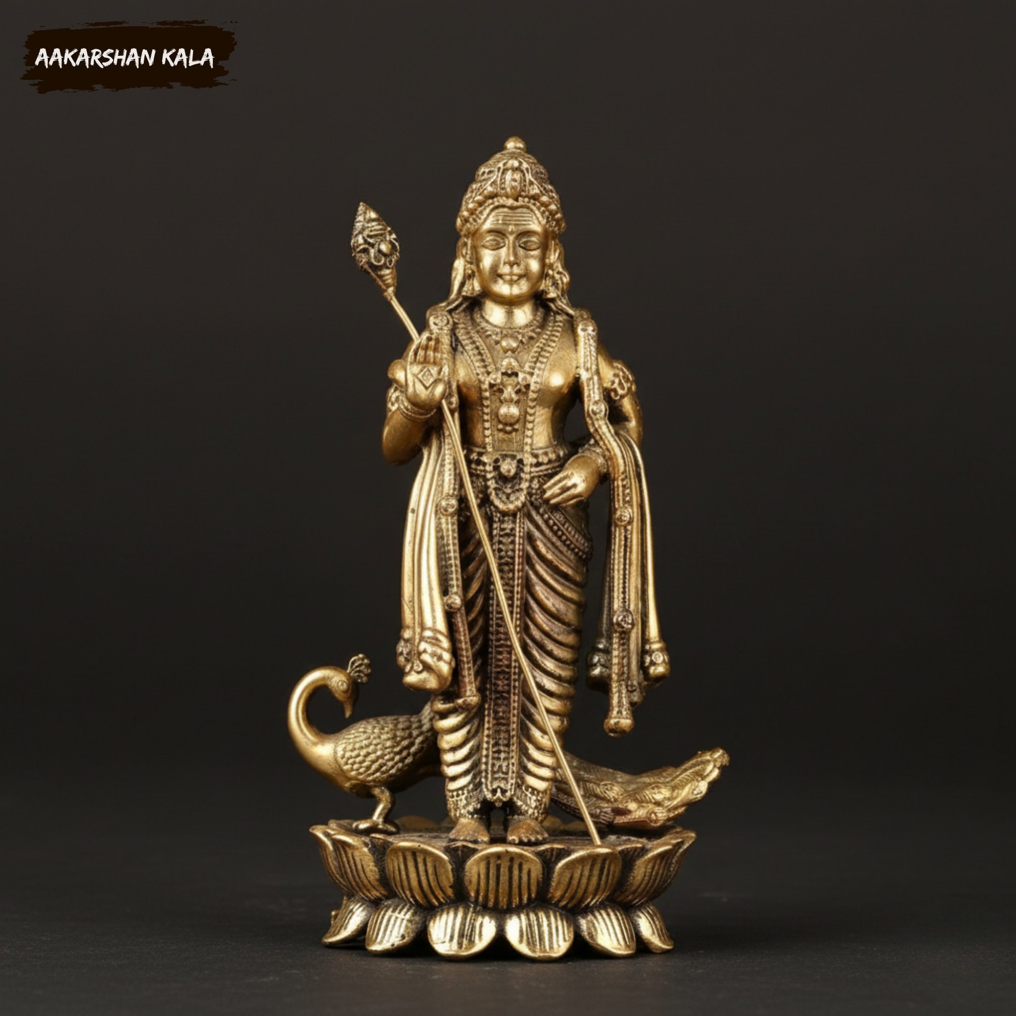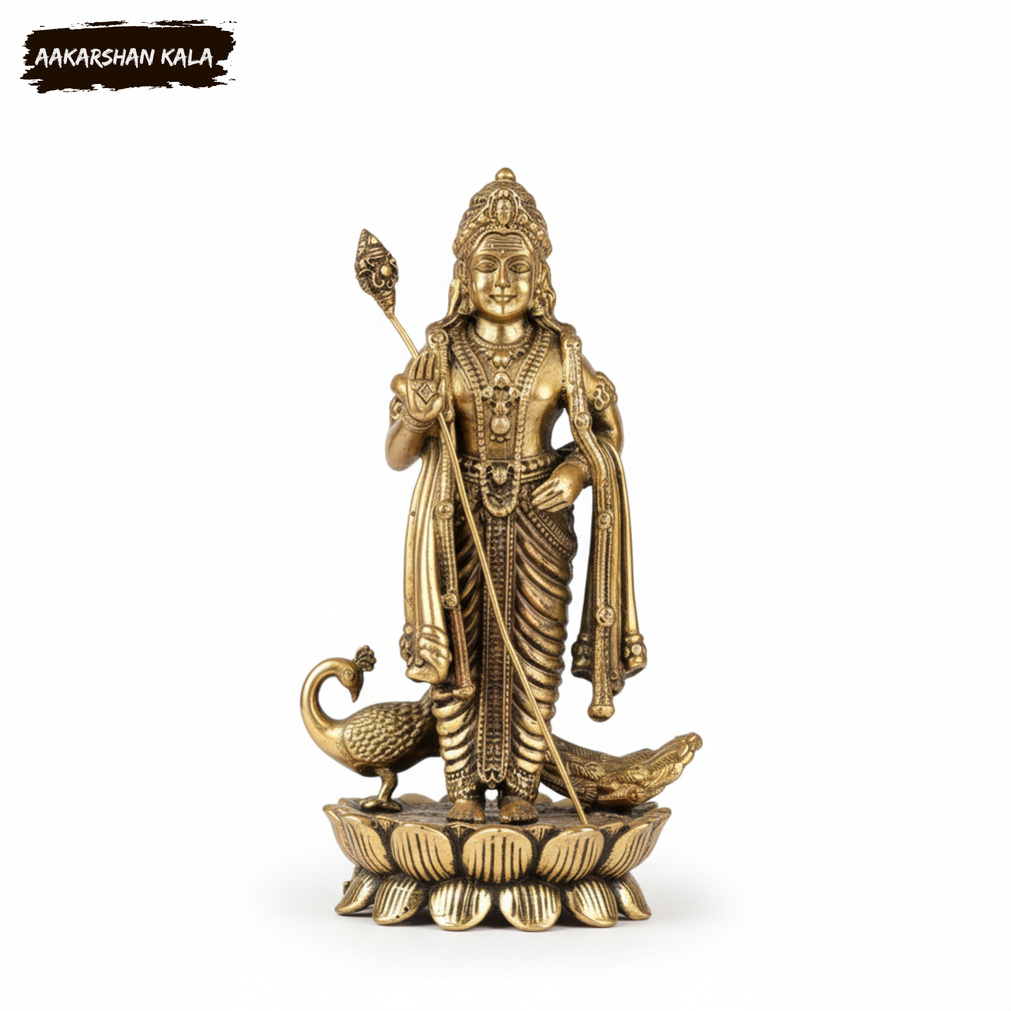Bring divine grace into your home with this beautifully handcrafted Brass Murugan Idol. Lord Murugan — also known as Kartikeya or Skanda — is revered as the God of courage, strength, and wisdom. This compact brass idol is perfect for your home temple, meditation space, or sacred altar.