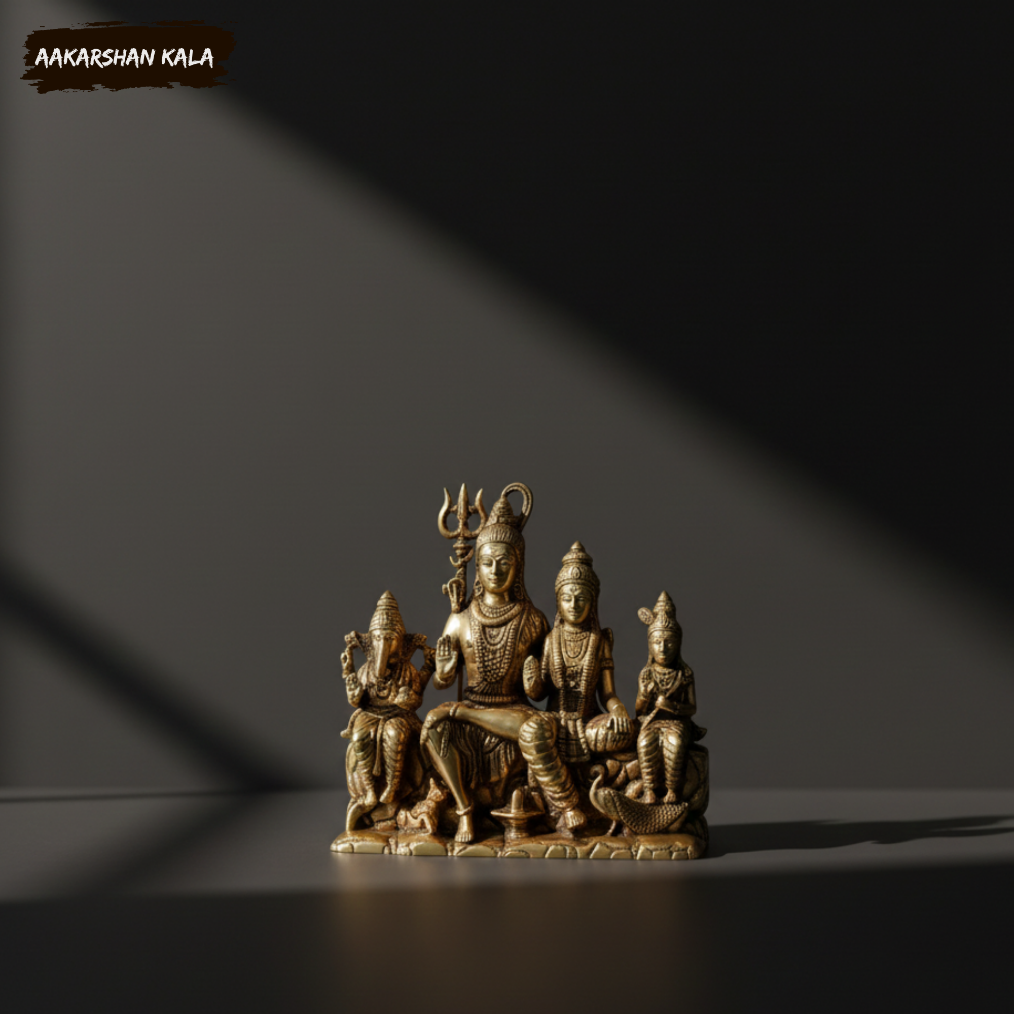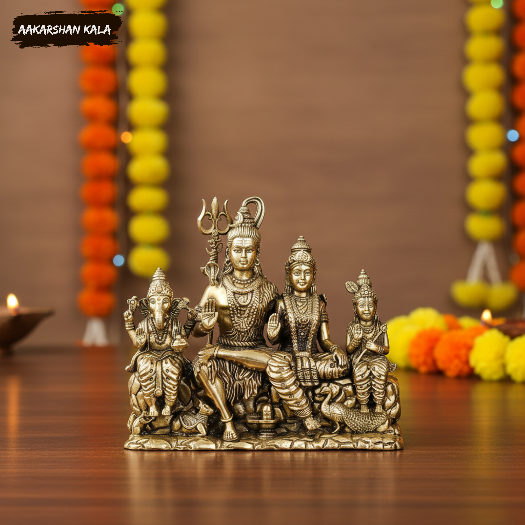 Adorn your home with this beautifully handcrafted Brass Shiv Parivar Idol, an artistic representation of divine unity, love, and harmony. Featuring Lord Shiva, Goddess Parvati, and Lord Ganesha together, this idol symbolizes protection, auspiciousness, and completeness in family life.