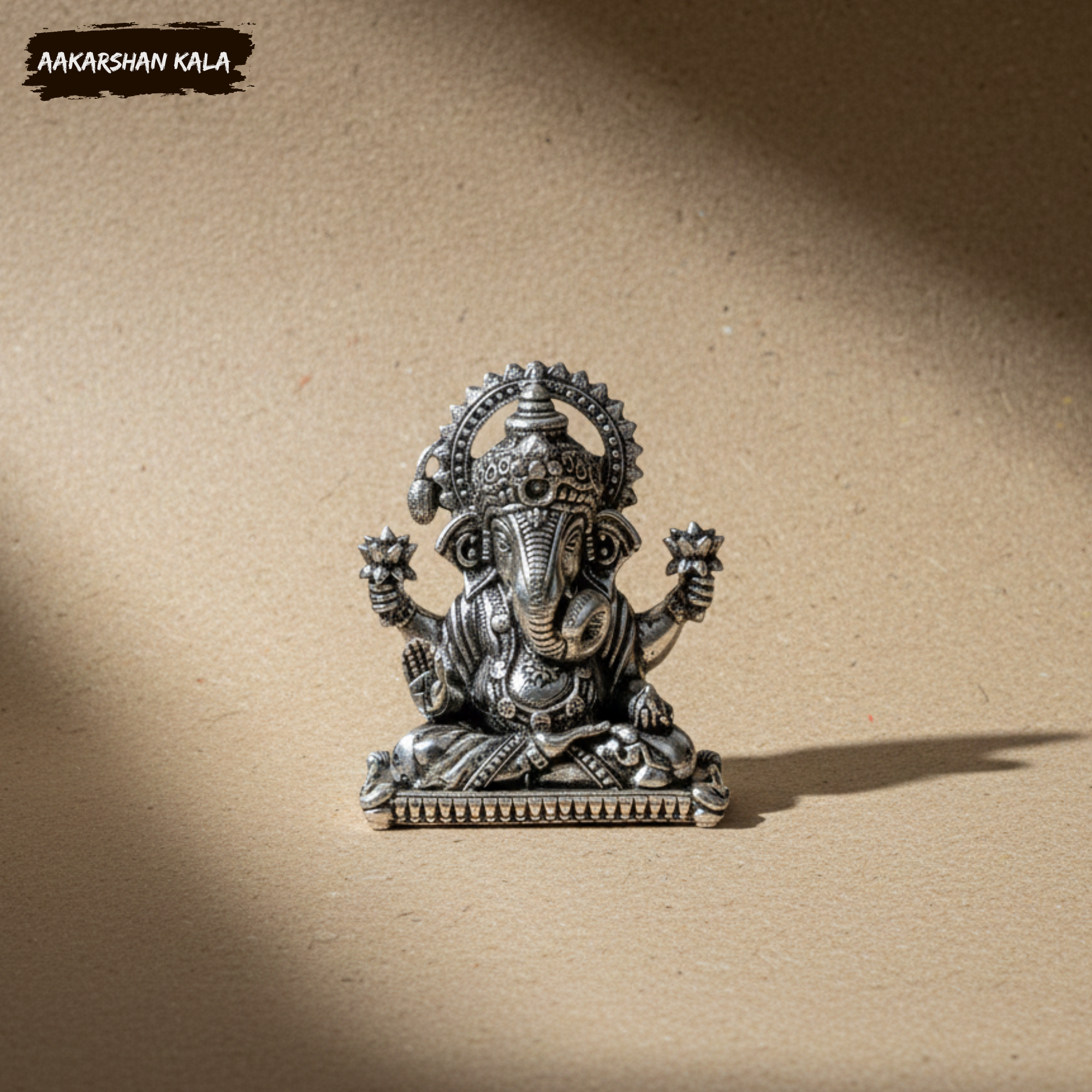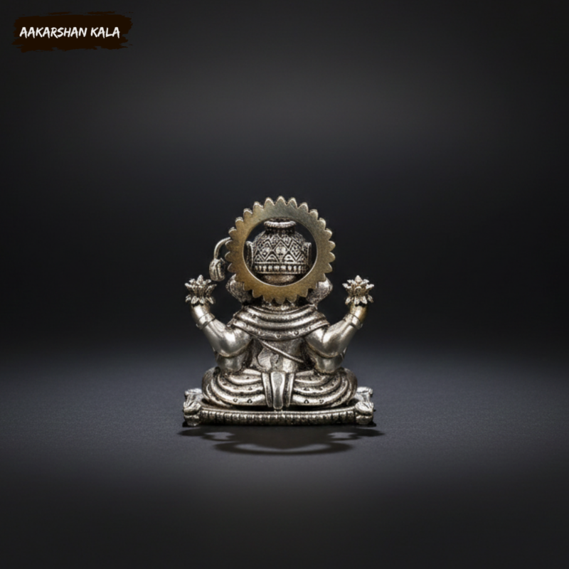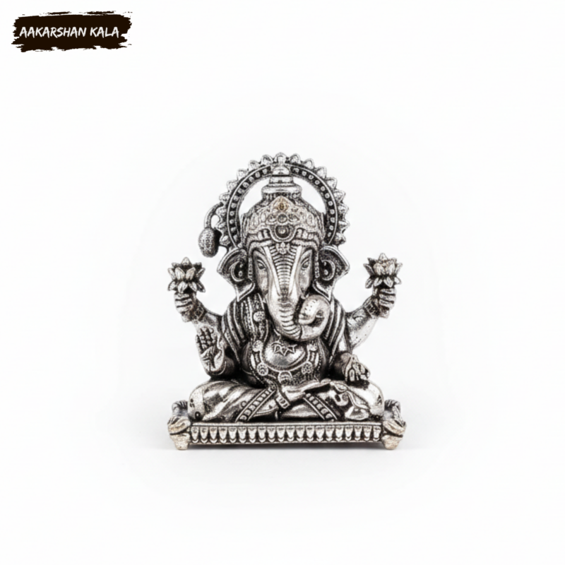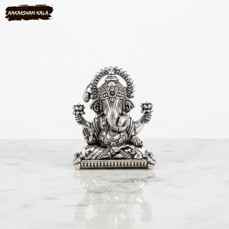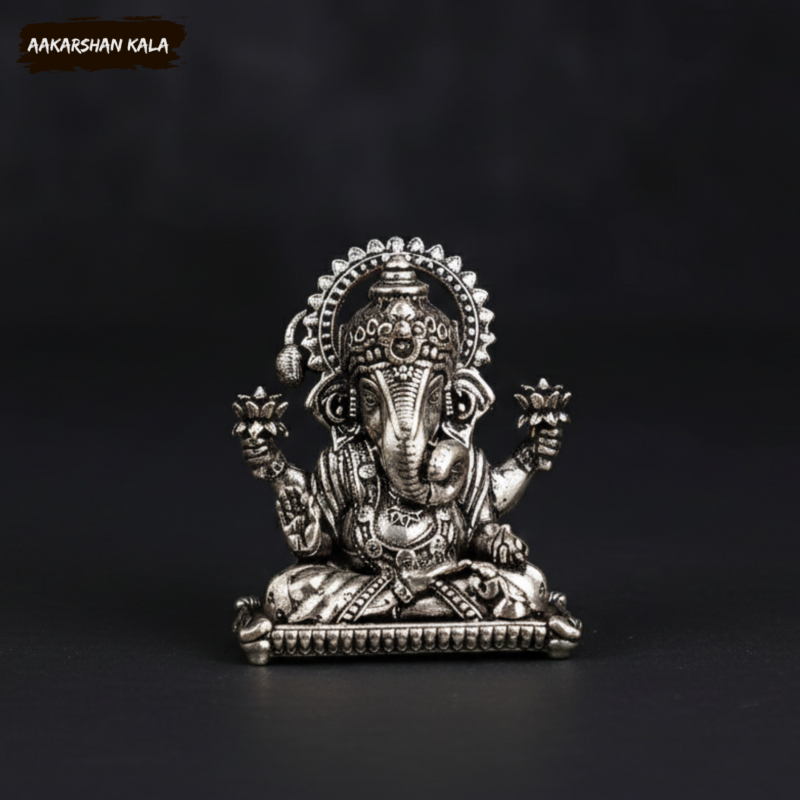 Discover the charm and spiritual radiance of this beautiful brass miniature Dagduseth Ganapati idol, enhanced with a premium silver-plated finish. Inspired by the revered Dagduseth Temple in Pune, this compact idol is perfect for your pooja corner, desk, car dashboard, home shrine, or as a thoughtful spiritual gift.